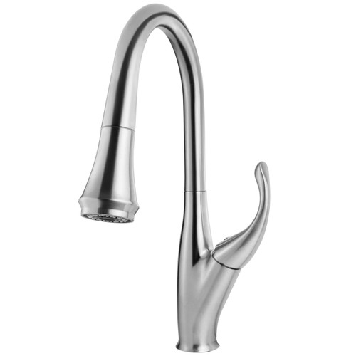 Geyser Pull-Down Faucets offer a streamlined construction and unparalleled performance. The Geyser GF75-S features a stylish goosneck spout which allows for 360° swivel and a pull-down nylon flex hose which extends up to 20 inches, offering ease and flexibility for filling pots and pans and rinsing produce, while the lever handle provides precise, easy-to-operate single-hand temperature and water volume control. A dual-mode Neoperl honeycomb nozzle lets you choose an aerated stream or spray mode and the easy-clean silicone spray head wipes clean with a fingertip.